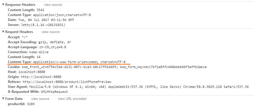 和通过jquery中的ajax方法发送的请求作对比,发现问题出在了请求的主体部分。