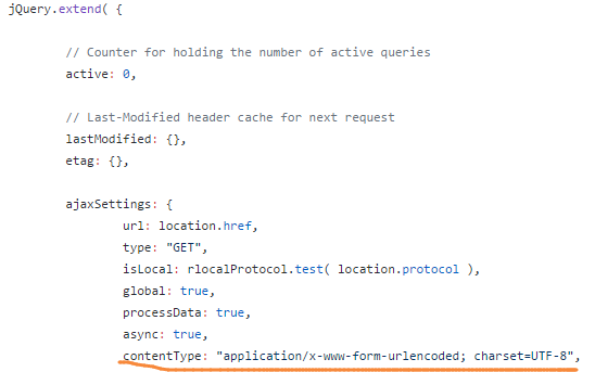 在jq的ajax模块中,contentType默认使用的是formData发送主体的。既然如此,我们就通过传入自定义的contentType: